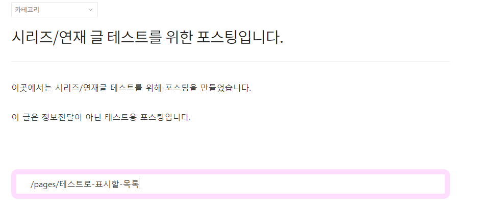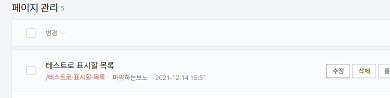 모든 연재글에 공통으로 보여줄 페이지를 생성한다. 여기서는 "테스트로 표시할 목록"이라고 이름을 붙였다.