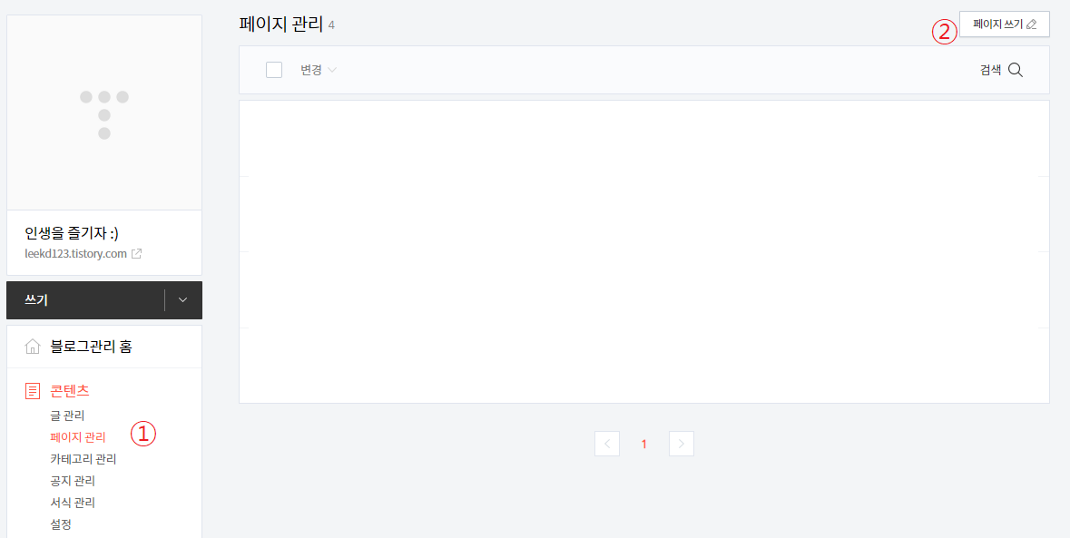 이 포스팅에서 만든 방법은 티스토리의 페이지/서식 기능을 사용한다.