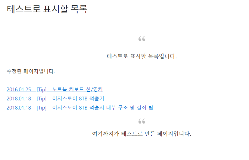 적당한 내용과 적당한 목록을 추가하고 페이지를 발행한다.