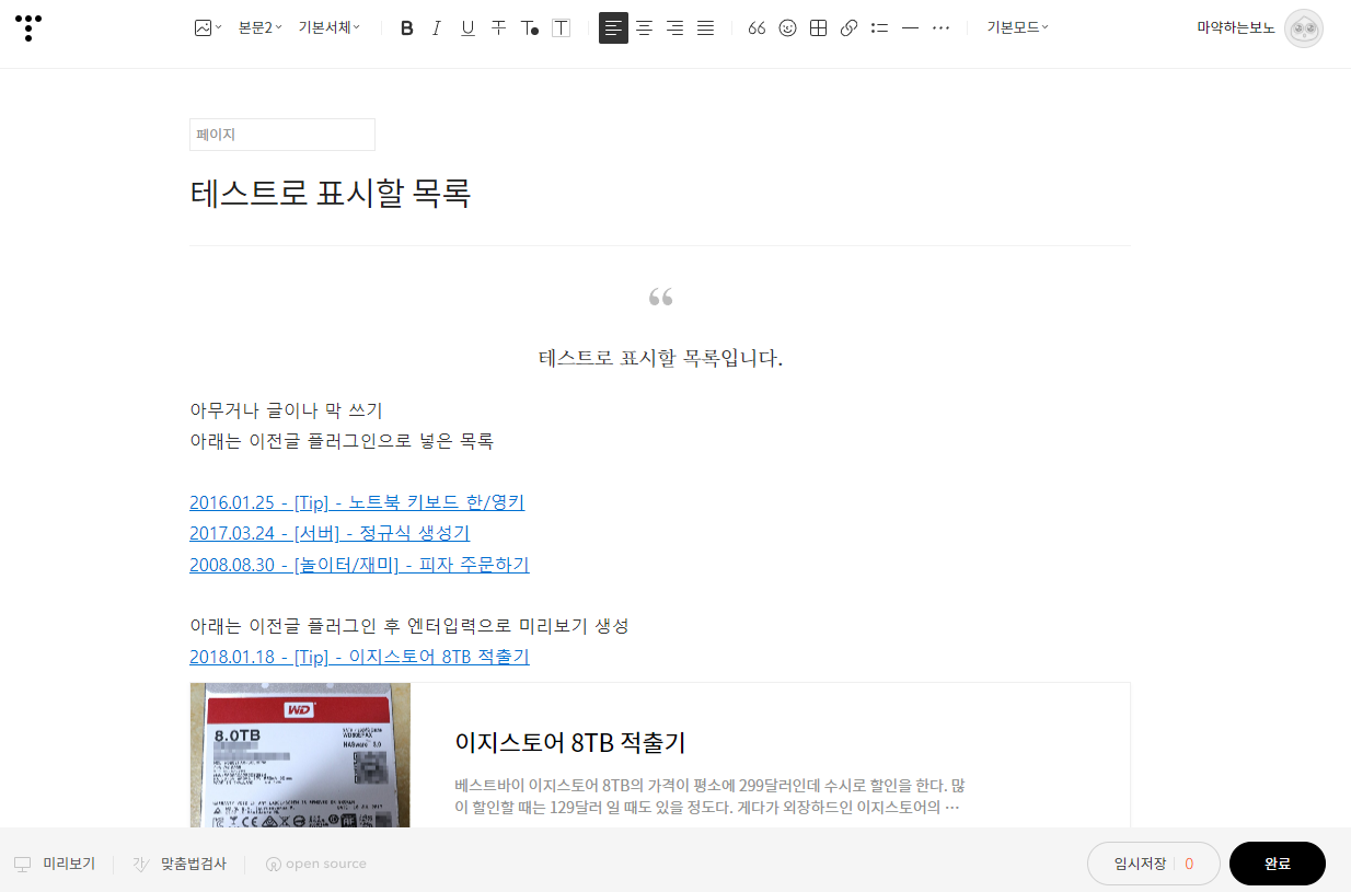 또는 미리 목차를 만들어 두고 목차에 따라 포스팅을 진행하는 방법도 가능하다.