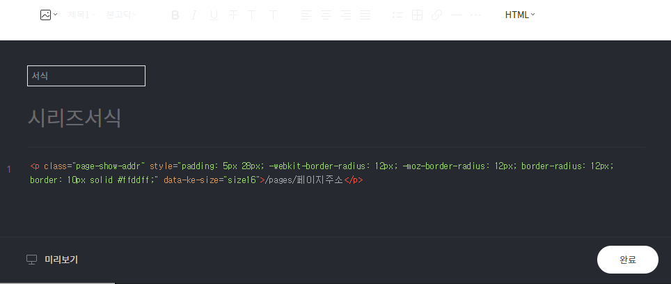 서식의 내용은 HTML로 변경 후 아래 코드를 복사하여 붙여넣으면 된다.