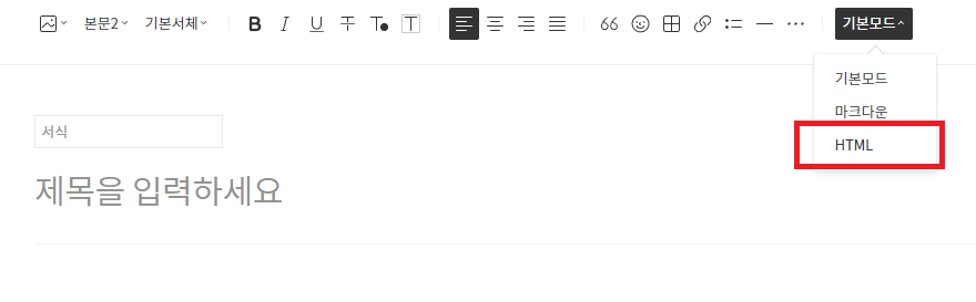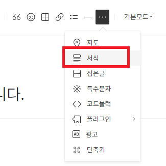 이제 만든 서식을 적용할 글을 작성하고 서식을 적용할 곳에 커서를 두고 서식을 추가한다.