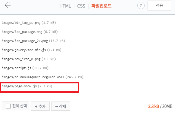스킨편집에서 파일업로드로 이동 후 아래 파일을 업로드한다.